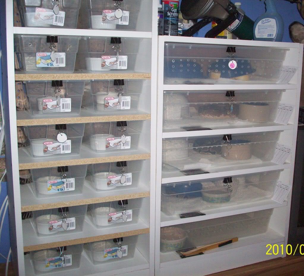 4 sterilite 1960 tubs are. All of our rack prices include shipping and heat. Adding the additional racks on top allowed me to store more breeders in them and more babies. Canada specializing in a high standard of boa constrictor imperator morphs.